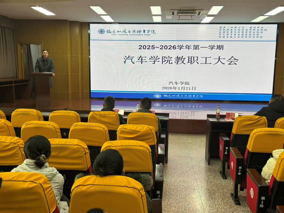 2026年1月21日,汽車學(xué)院在行政樓六樓學(xué)術(shù)報告廳召開全體教職工大會,學(xué)院黨政領(lǐng)導(dǎo)及全體教職工全員參會。