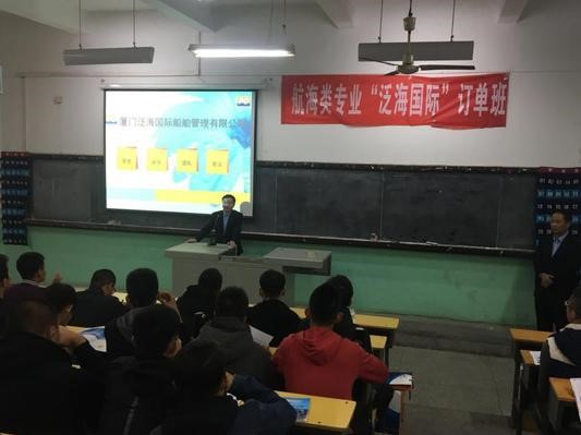最后,廈門(mén)泛海國(guó)際船舶有限公司周永煌副總經(jīng)理分別與航海技術(shù)系江明光主任、輪機(jī)工程系陳清彬主任簽訂了訂單班培養(yǎng)協(xié)議。簽約儀式結(jié)束后,周永煌副總在航海樓東大教室面向2017級(jí)航海技術(shù)和輪機(jī)工程專業(yè)100余新生進(jìn)行企業(yè)宣講,現(xiàn)場(chǎng)氣氛熱烈,同學(xué)們積極與周永煌副總交流,了解用人單位情況。通過(guò)這一雙贏協(xié)議,使航海類專業(yè)的辦學(xué)更具有針對(duì)性和專業(yè)性,有利于更好地培養(yǎng)出適合企業(yè)需要的緊缺專業(yè)技術(shù)人才。