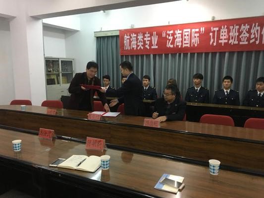 為了積極響應(yīng)國(guó)家關(guān)于加強(qiáng)學(xué)校和企業(yè)合作的號(hào)召,充分發(fā)揮校企雙方優(yōu)勢(shì),適應(yīng)國(guó)際船員勞務(wù)市場(chǎng)需要,滿足國(guó)內(nèi)外船東對(duì)航海人才需求,2019年12月6日下午,學(xué)院在校友樓四樓會(huì)議室舉行了由航海技術(shù)系江明光主任主持的針對(duì)航海類專業(yè)的“泛海國(guó)際”訂單班簽約儀式。學(xué)院副院長(zhǎng)高汝武、廈門(mén)泛海國(guó)際船舶管理有限公司副總經(jīng)理周永煌、教務(wù)處處長(zhǎng)陳朝慰、航海技術(shù)系主任江明光、輪機(jī)工程系主任陳清彬、航海技術(shù)系黨總支書(shū)記劉群勇以及各學(xué)生代表參加。