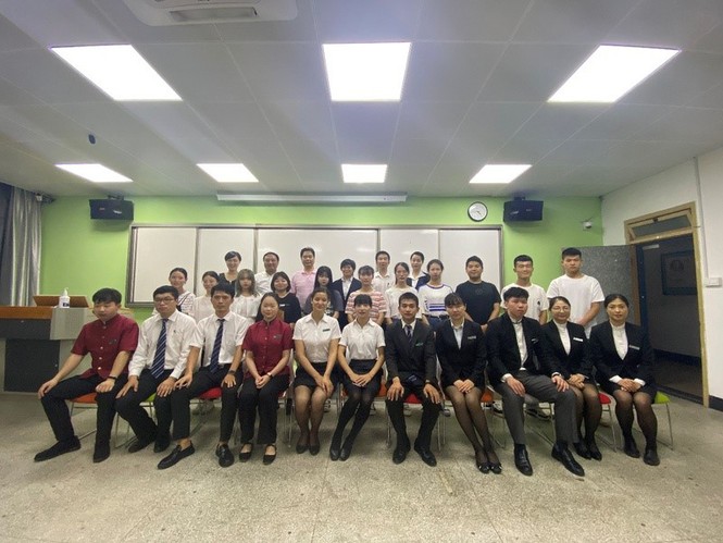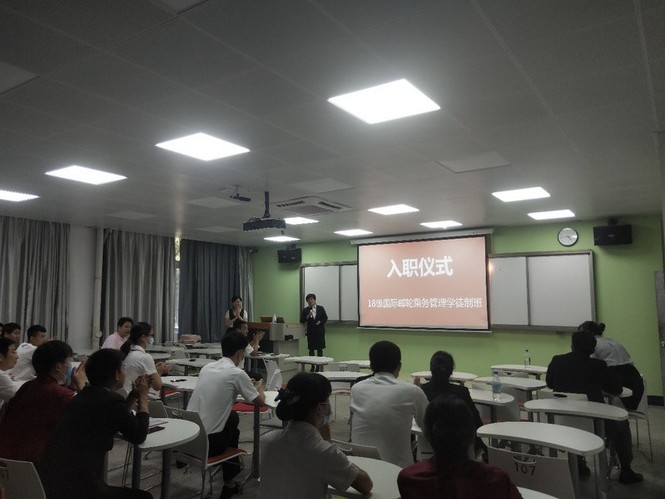 2020年6月15日下午,航海技術(shù)系與廈門建發(fā)旅游集團在學院南區(qū)31號樓107教室舉行了國際郵輪乘務管理專業(yè)現(xiàn)代學徒制班的入職儀式。本次入職儀式是現(xiàn)代學徒制試點繼2019年5月5日拜師儀式后的又一重要環(huán)節(jié),通過入職儀式,師徒雙方一一對接,明確職責,為入職后人才的精準培養(yǎng)開啟了新篇章。航海技術(shù)系江明光主任、航海技術(shù)系伍小明書記、建發(fā)旅游集團福州區(qū)域人力資源管理培訓中心侯巧玲經(jīng)理等15位導師、國際郵輪乘務管理專業(yè)教研室主任、輔導員及2018級國際郵輪乘務管理專業(yè)學徒制班學生共同參加了入職儀式。