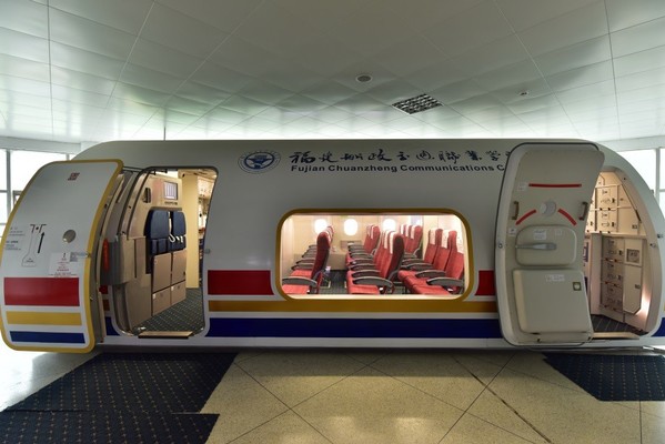 從地面的值機(jī)、驗(yàn)證、安檢、登機(jī)開(kāi)始,就感受到18級(jí)空中乘務(wù)的同學(xué)燦爛的笑容和專業(yè)的素質(zhì)??此茝?fù)雜的程序,在同學(xué)們熟練的操作引導(dǎo)下,“乘客們”快速有序地登上這架航班。
