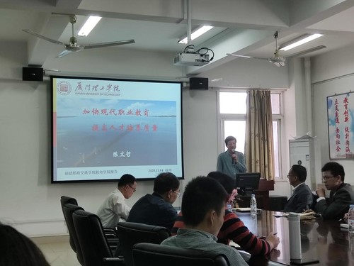 今年全國職業(yè)教育宣傳周活動的主題是“技能人才展時代風(fēng)采,職教奮進(jìn)慶祖國華誕”。為積極響應(yīng)全國職業(yè)教育宣傳周的號召,營造濃厚的職業(yè)宣傳氛圍,提高社會各界對職業(yè)教育的認(rèn)可度,進(jìn)一步深化職業(yè)教育教學(xué)改革,推進(jìn)現(xiàn)代職業(yè)教育,提高教學(xué)質(zhì)量,切實加強(qiáng)技能型人才的培養(yǎng),11月3日下午,我院邀請原廈門理工學(xué)院校長陳文哲教授作《加快現(xiàn)代職業(yè)教育 提高人才培養(yǎng)質(zhì)量》專題講座。機(jī)械學(xué)院全體教職工參會聽講,報告會由機(jī)械學(xué)院院長楊開懷博士主持。