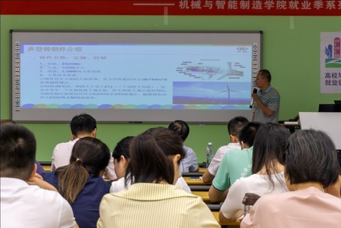 活動伊始,陳水發(fā)副院長代表機械學院對鄭建斌總工的到來表示了熱烈的歡迎,接著鄭總從“興航重工簡介、典型鑄鋼件介紹、與機械學院產(chǎn)學研合作”三個方面做了報告。首先鄭總給我們詳細介紹了福建興航重工有限公司概況、產(chǎn)品類型、企業(yè)榮譽和企業(yè)目標以及企業(yè)開展的科研研究工作等概況。
