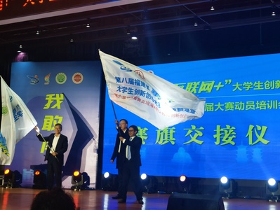 會上省教育廳副廳長劉?。ㄕ龔d級)宣布第八屆互聯(lián)網(wǎng)+創(chuàng)新創(chuàng)業(yè)大賽職教賽道暨黃炎培職業(yè)教育創(chuàng)新創(chuàng)業(yè)大賽將由福建船政交通職業(yè)學院承辦。學院黨委副書記陳宜大接過第八屆“互聯(lián)網(wǎng)+”創(chuàng)新創(chuàng)業(yè)大賽組委會賽旗,并作為承辦校代表發(fā)言。他表示:作為新一屆職教賽道承辦校,船政會倍加珍惜,一定在省教育廳等主辦部門的領(lǐng)導下、在兄弟院校支持下,舉全校之力,精心組織,優(yōu)質(zhì)服務,為我省青年學子呈現(xiàn)一場高水平的創(chuàng)新創(chuàng)業(yè)盛會!