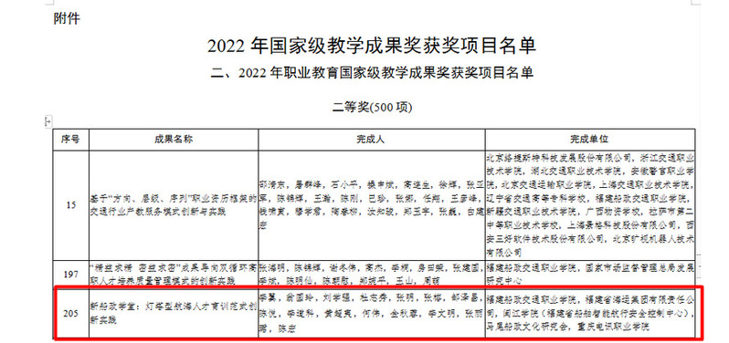 7月24日,教育部公布了2022年國(guó)家級(jí)教學(xué)成果獎(jiǎng)獲獎(jiǎng)項(xiàng)目名單。由我校航海學(xué)院主持申報(bào)的《新船政學(xué)堂:燈塔型航海人才育訓(xùn)范式創(chuàng)新實(shí)踐》教學(xué)成果獲得二等獎(jiǎng)。