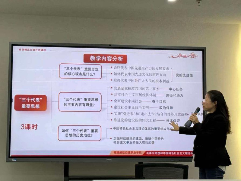 為了發(fā)揮團(tuán)隊(duì)合力,提升教學(xué)實(shí)效,福建船政交通職業(yè)學(xué)院馬克思主義學(xué)院于2025年11月26日圍繞《毛澤東思想和中國特色社會(huì)主義理論體系概論》課程第七章“三個(gè)代表重要思想”開展了專題集體備課會(huì)。本次活動(dòng)由主備課人劉麗萍老師領(lǐng)學(xué)主講,全體授課教師齊聚一堂,開展了深入而富有成效的教學(xué)研討。