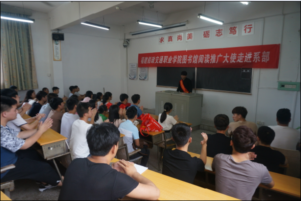 近日,我館首批“閱讀推廣大使”先后走進了管理系、汽車系、建工系等系部。