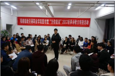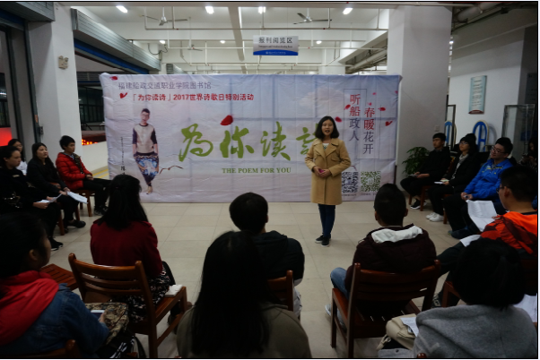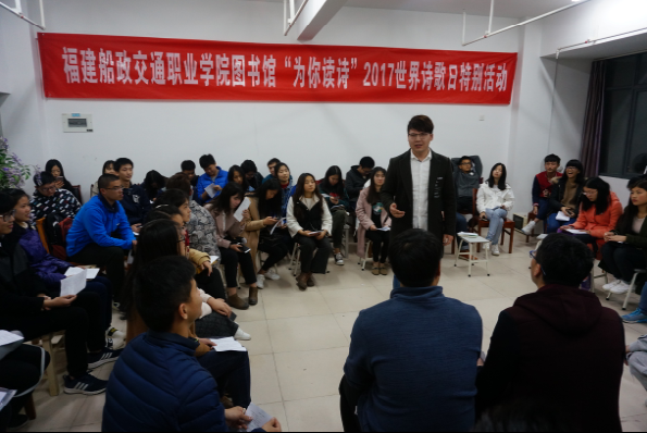 為豐富校園文化生活,傳承百年船政文化。值此2017世界詩歌日即將到來之際,福建船政交通職業(yè)學(xué)院圖書館與著名詩歌藝術(shù)活動微信公眾號「為你讀詩」合作,舉行「為你讀詩」2017世界詩歌日高校特別系列活動。