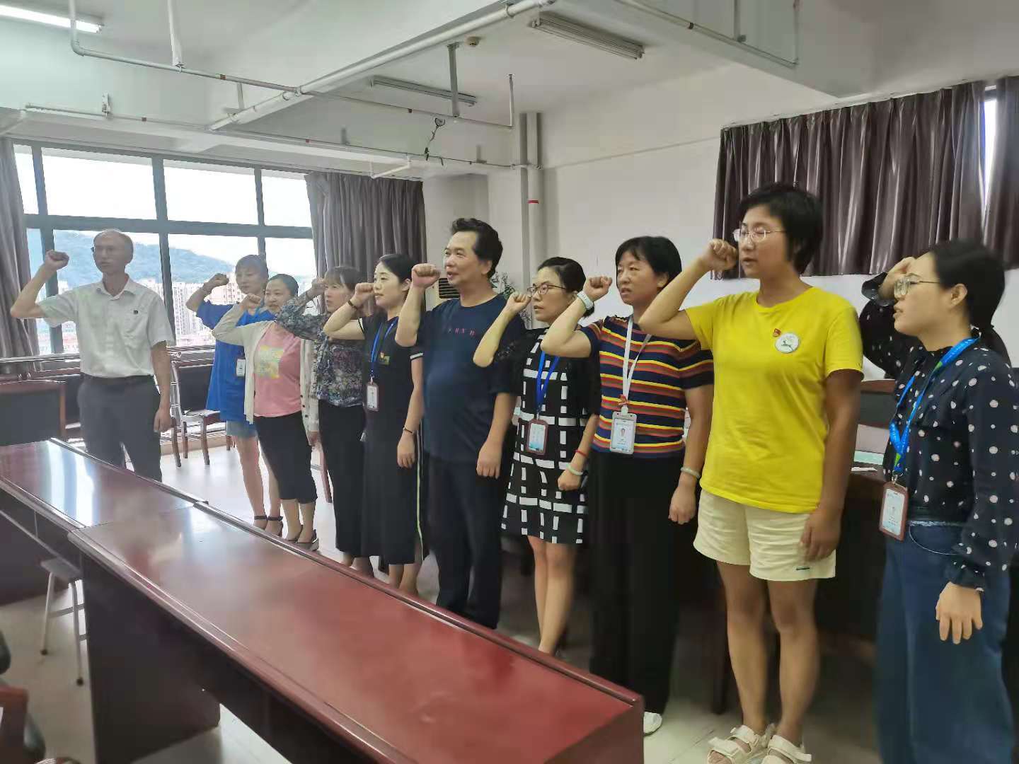 活動中,面對鮮紅的黨旗,全體黨員舉起右手莊嚴宣誓,鏗鏘有力的誓言再次表達了大家永遠跟黨走的信心和決心。