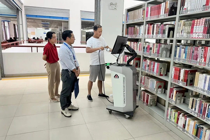 隨后,張副院長對智慧圖書館平臺建設(shè)的試用效果進行了深入調(diào)研。陳林館長匯報了智慧圖書館建設(shè)的進展情況和應(yīng)用效果,工作人員現(xiàn)場演示了激光條碼系統(tǒng)快速借還圖書、智能盤點等操作,張副院長對圖書館整體工作、智慧圖書館平臺建設(shè)進展給予了充分的肯定,并提出具體的指導(dǎo)意見及建議。