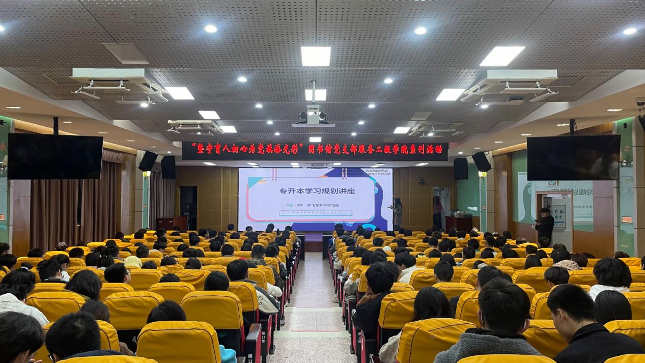 耕耘更知韶光貴,不待揚(yáng)鞭自奔蹄,圖書館秉持全心全意為學(xué)生服務(wù)的理念,為加強(qiáng)對(duì)學(xué)生職業(yè)生涯規(guī)劃的指導(dǎo),幫助同學(xué)們了解專升本途徑,挖掘自身潛能,及時(shí)把握學(xué)歷提升機(jī)會(huì)。12月27日在行政樓6樓學(xué)術(shù)報(bào)告廳,圖書館黨支部開展服務(wù)二級(jí)學(xué)院系列活動(dòng)——舉辦“專升本學(xué)習(xí)規(guī)劃”專題講座。邀請(qǐng)夢飛教育集團(tuán)講師、專升本政策規(guī)劃師蔡巧霞老師為同學(xué)們作專升本政策解讀與報(bào)考指導(dǎo),340名同學(xué)聆聽了講座。