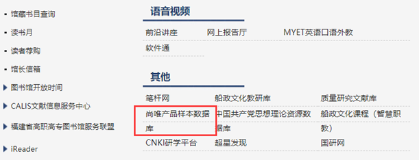 3、圖書館首頁 - > 其他 - > 尚唯產(chǎn)品樣本數(shù)據(jù)庫(kù),找到數(shù)據(jù)庫(kù)。
