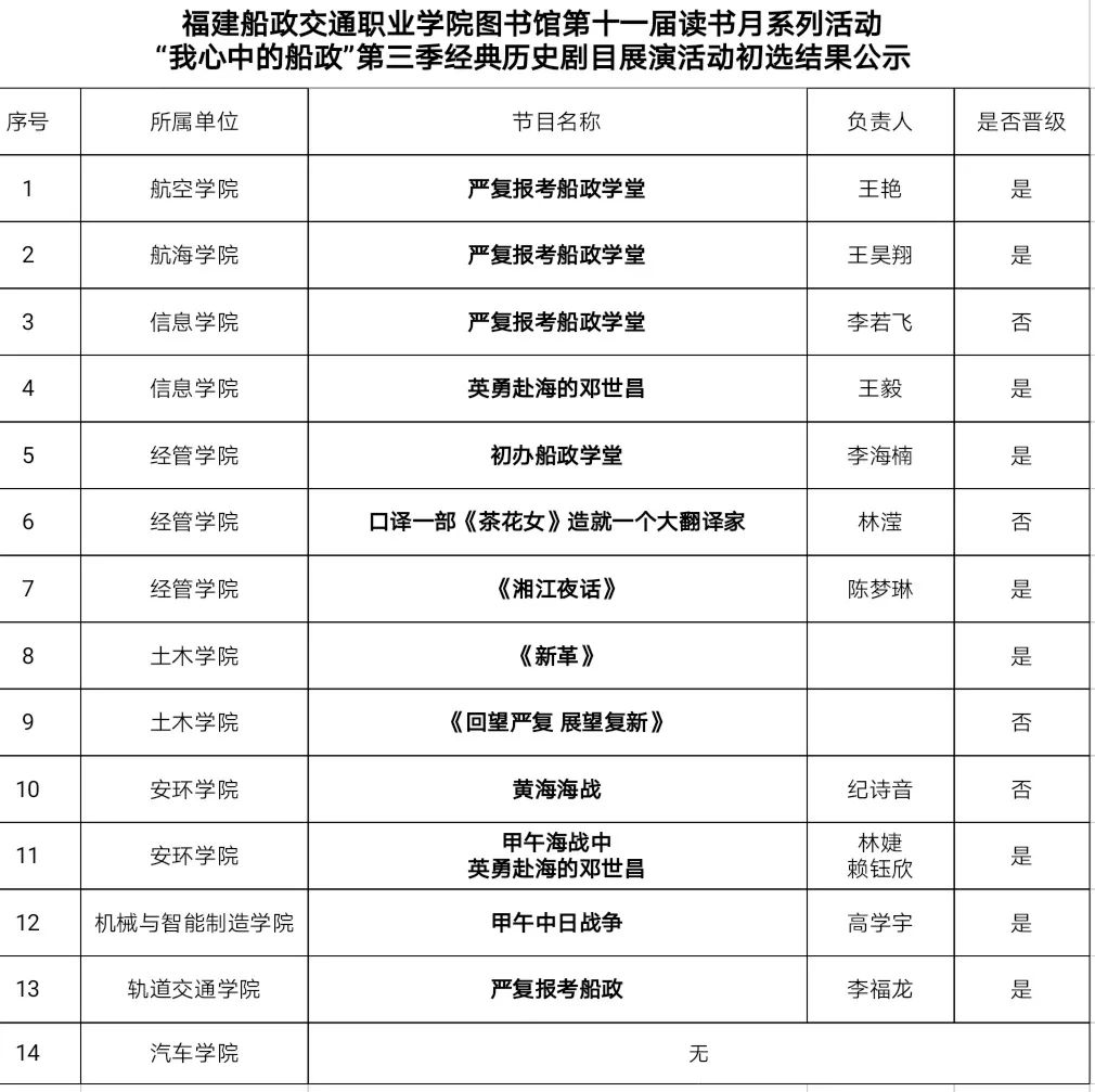 經(jīng)過全校學(xué)生的積極參與,各二級學(xué)院的評比選送,最終13個(gè)劇目進(jìn)入此次活動(dòng)的初賽。現(xiàn)將初選結(jié)果公示如下