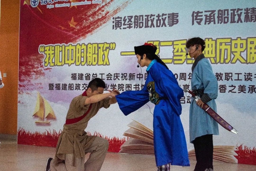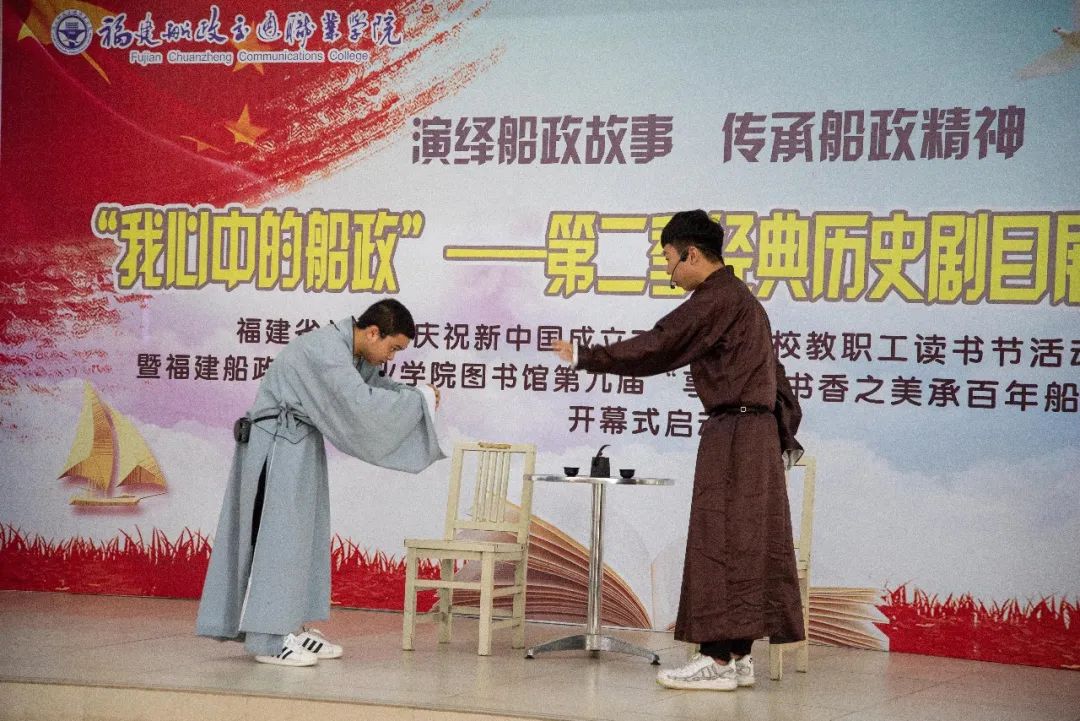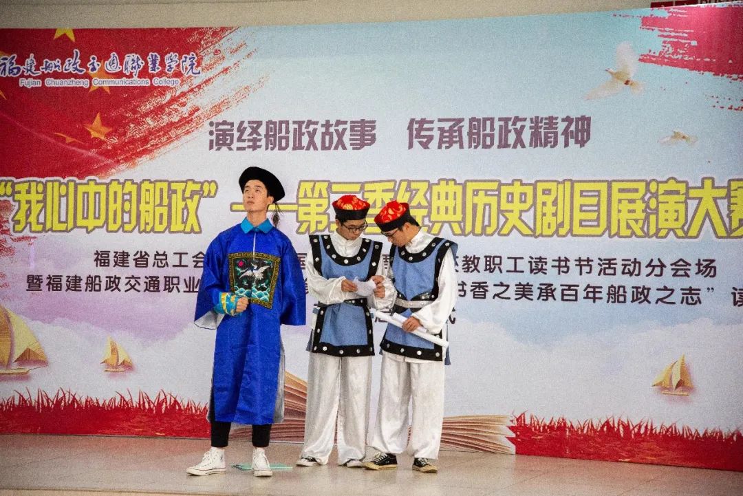 為深入宣傳船政文化,提升我館閱讀推廣活動(dòng)育人功能,圖書館于近日在我校開展“傳承百年紅色基因 品閱書香船政文化”圖書館第十一屆讀書月系列活動(dòng)暨“我心中的船政”第三季經(jīng)典歷史劇目展演比賽。