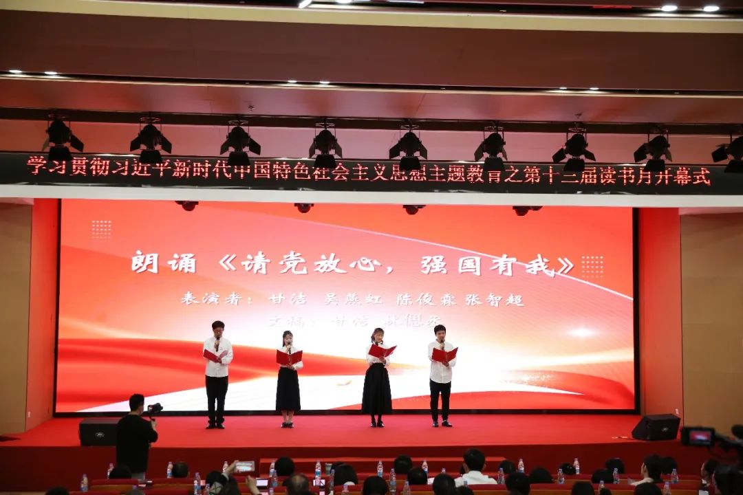 同時,我校師生為大家?guī)砹恕墩堻h放心,強國有我》等精彩的朗誦表演。
