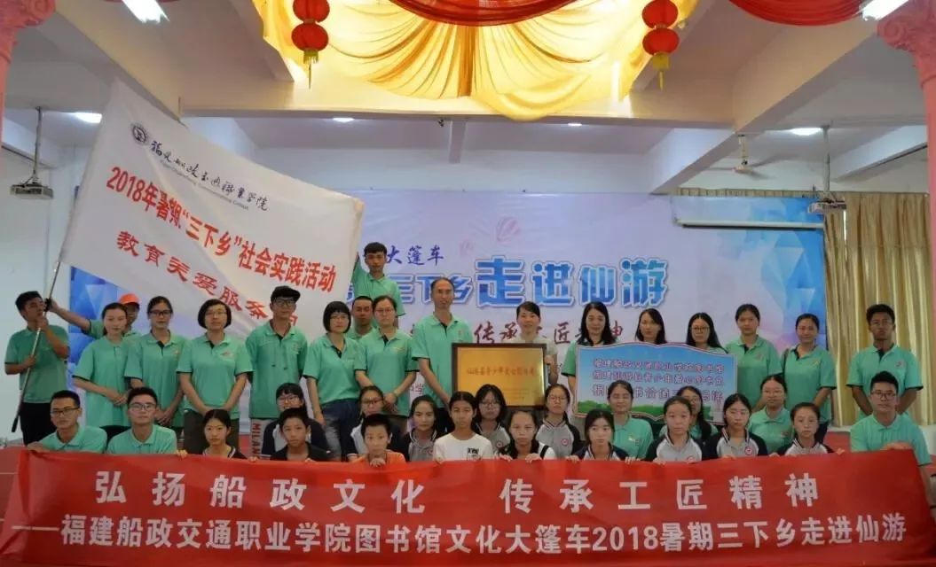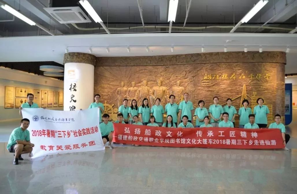 2018年暑期,學院共有15支隊伍參加暑期三下鄉(xiāng)社會實踐活動。圖書館思源志愿服務隊共計25名師生依托 “文化大篷車”項目,組成了圖書館暑期三下鄉(xiāng)“教育關愛服務隊”,帶著我院師生的愛心,通過以“弘揚船政文化 傳承工匠精神”為主旨的一系列服務活動,在仙游開展了為期一周的暑期社會實踐活動,將滿滿的愛意傳遞到仙游縣市民的心中。