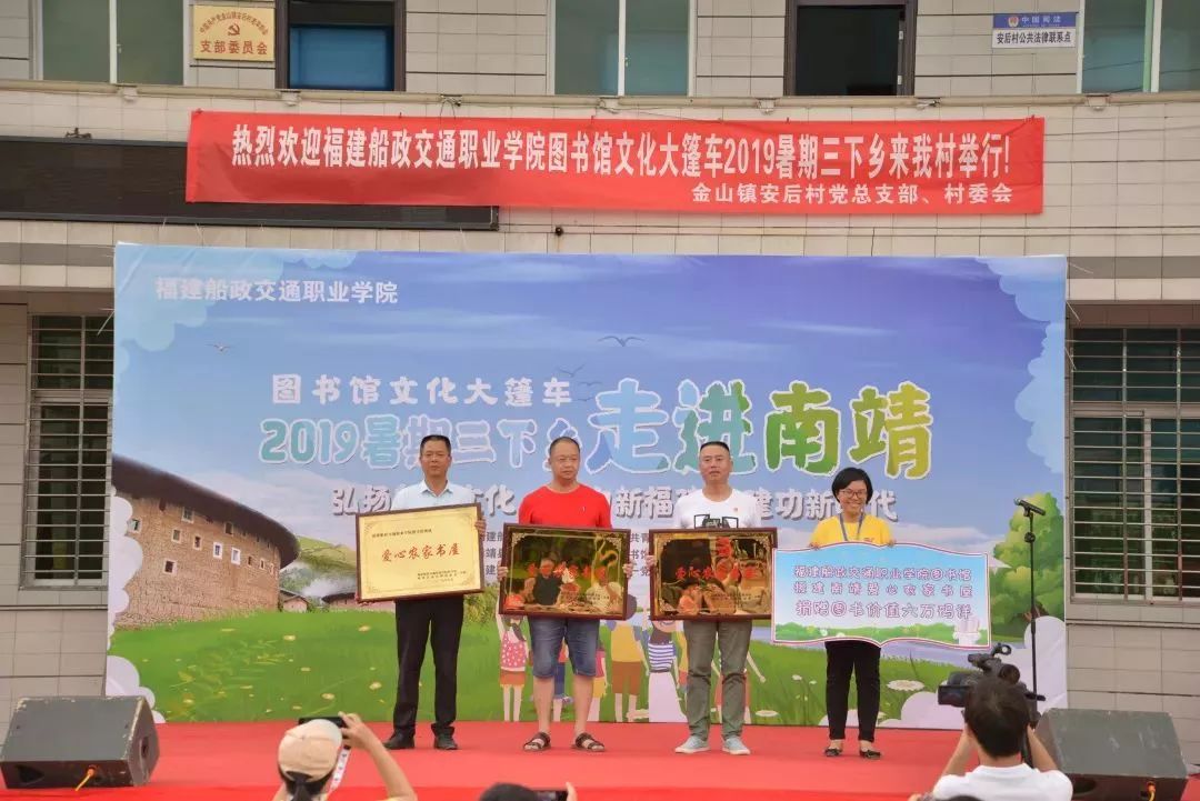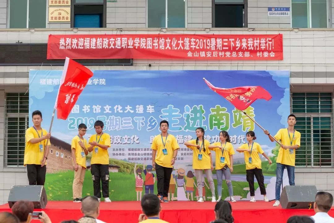 南 福建船政交通職業(yè)學(xué)院圖書館“教育關(guān)愛服務(wù)團(tuán)”2019年暑期“三下鄉(xiāng)”實(shí)踐活動,在漳州市南靖縣安后村正式拉開了帷幕。南靖團(tuán)縣委、縣圖書館、金山鎮(zhèn)政府領(lǐng)導(dǎo),三下鄉(xiāng)社會實(shí)踐代表團(tuán)成員及安后村村民近300人在安后村村部共同參與此次三下鄉(xiāng)啟動儀式。