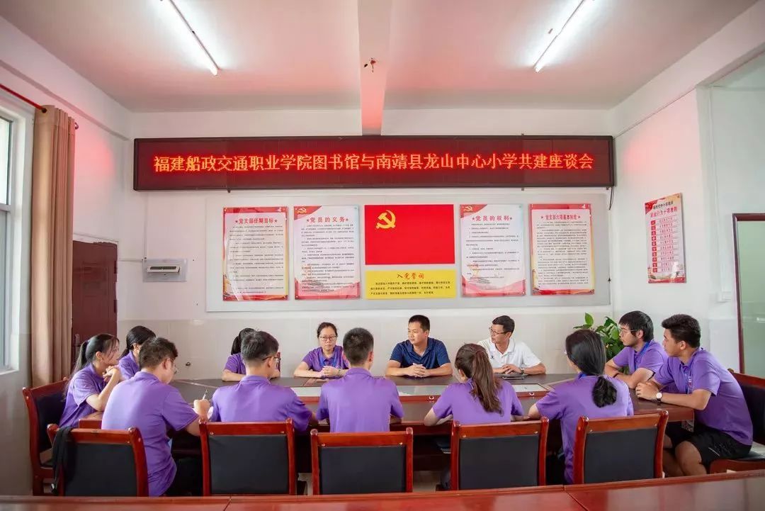 為促進(jìn)優(yōu)質(zhì)學(xué)校資源與相對薄弱學(xué)校優(yōu)勢互補(bǔ),推動城鄉(xiāng)學(xué)校教育質(zhì)量的提升,福建船政交通職業(yè)學(xué)院圖書館2019暑期“三下鄉(xiāng)”教育關(guān)愛服務(wù)團(tuán)社會實(shí)踐隊前往鄉(xiāng)村學(xué)校青少年宮——南靖縣的龍山中心小學(xué)開展共建座談會,就體育文化教育、圖書館發(fā)展建設(shè)、協(xié)商開展互聯(lián)互幫結(jié)對幫扶活動及相關(guān)資源援助等問題進(jìn)行了探討。