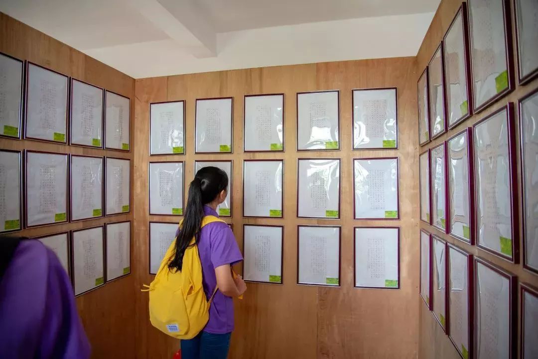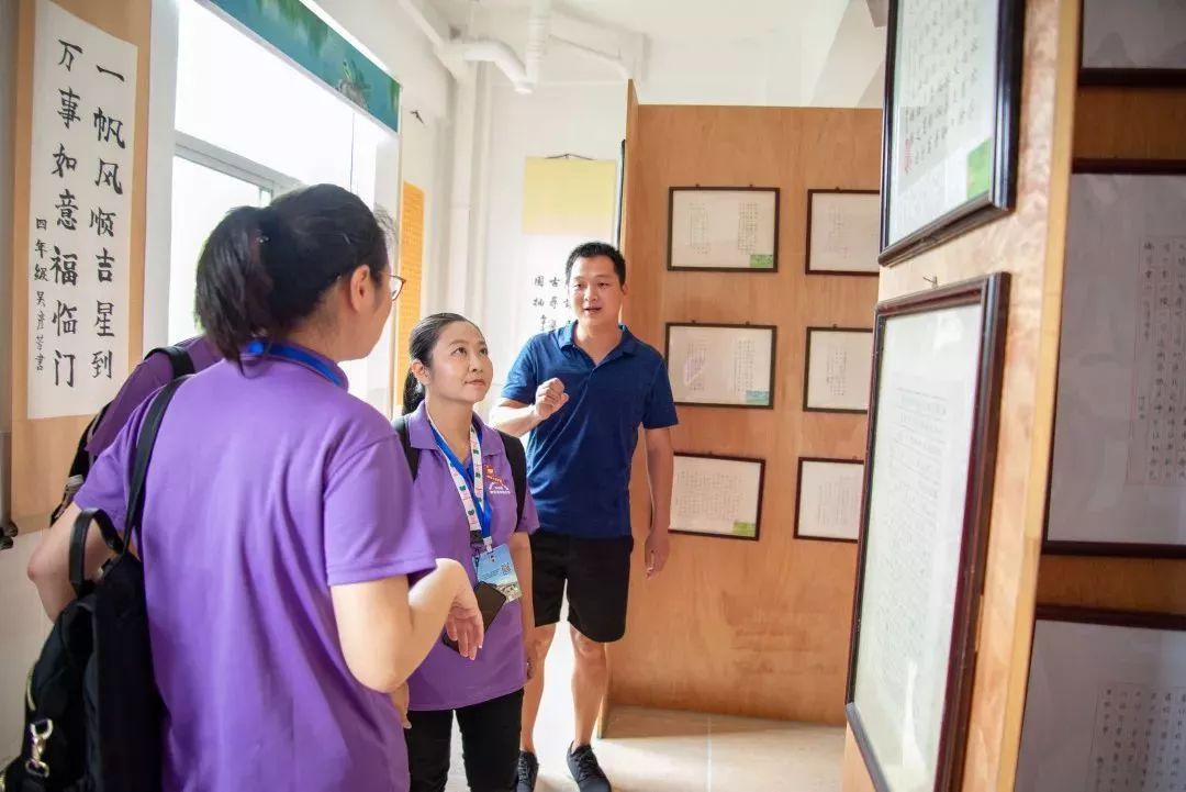 座談會后,三下鄉(xiāng)團(tuán)隊在徐老師的帶領(lǐng)下參觀了龍山中心小學(xué)硬筆書法展覽室和足球場。