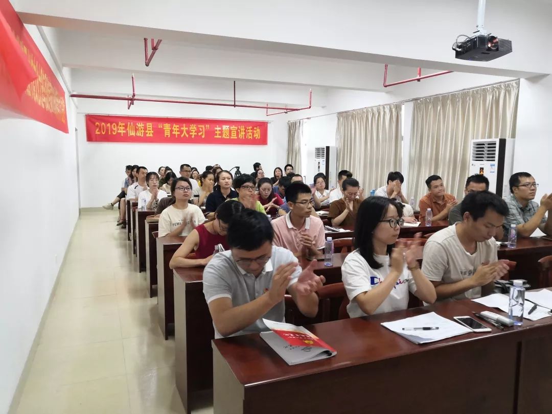 為進一步引導(dǎo)廣大青年深入學習、宣傳、貫徹習近平新時代中國特色社會主義思想和黨的十九大精神,不忘初心、牢記使命,切實增強“四個意識”,堅定“四個自信”,9月17日,仙游團縣委在縣委黨校組織開展2019年仙游縣“青年大學習”主題宣講活動,我館文化大篷車特邀思政專家走進此宣講活動,洪凌艷老師現(xiàn)場授課《平語近人》——習近平總書記用典,仙游團縣委黨支部全體黨員領(lǐng)導(dǎo)干部及50余名鄉(xiāng)鎮(zhèn)(街道)、學校團干部參加學習。