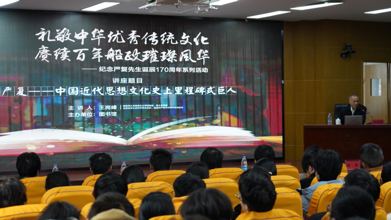 本次專題講座邀請福建師范大學(xué)馬克思主義學(xué)院王崗峰教授進行分享,我校共計350余名師生參加。王崗峰教授著眼于禮敬中華優(yōu)秀傳統(tǒng)文化、賡續(xù)百年船政璀璨風(fēng)華,深度解讀習(xí)近平同志與嚴(yán)復(fù)研究、習(xí)近平同志論嚴(yán)復(fù)精神,分享了自己研究嚴(yán)復(fù)精神的歷程與思考,勉勵同學(xué)們要始終關(guān)注中華優(yōu)秀傳統(tǒng)文化,進一步學(xué)習(xí)和發(fā)揚嚴(yán)復(fù)的愛國主義精神、首創(chuàng)精神和學(xué)貫中西的淵博思想。