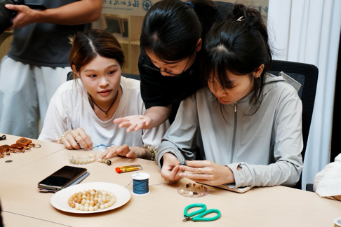 在老師的悉心指導(dǎo)下,同學(xué)們紛紛拿起手中的編繩和彩珠,躍躍欲試,期待那一根根編繩能在自己手上編出精美的作品。