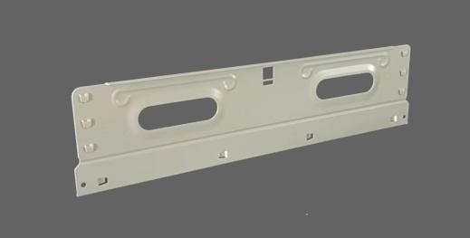 4、掛板:采用δ≥1.0mm優(yōu)質冷軋鋼板一體成型,整體成型高度≥130mm,掛板采用雙邊六掛扣式梯形扣結構梯形扣上邊≥10mm,下邊≥8mm,高度≥8mm,上下翻邊配圓弧過渡,美觀剛性強;正面上部配有2條圓弧壓筋直徑≥4mm,圓弧壓筋中間帶有橢圓孔拉伸表面2mm,具有加硬強度功能;正面下部壓制一條≥5mm整體通筋,保證掛板的直線度和整體剛性,擱板與掛板連接應有限位功能,掛板正面配有安裝檔條孔位。掛板與立柱之間連接方式采用六掛梯形扣相嵌接,掛板與立柱對接處更牢固。