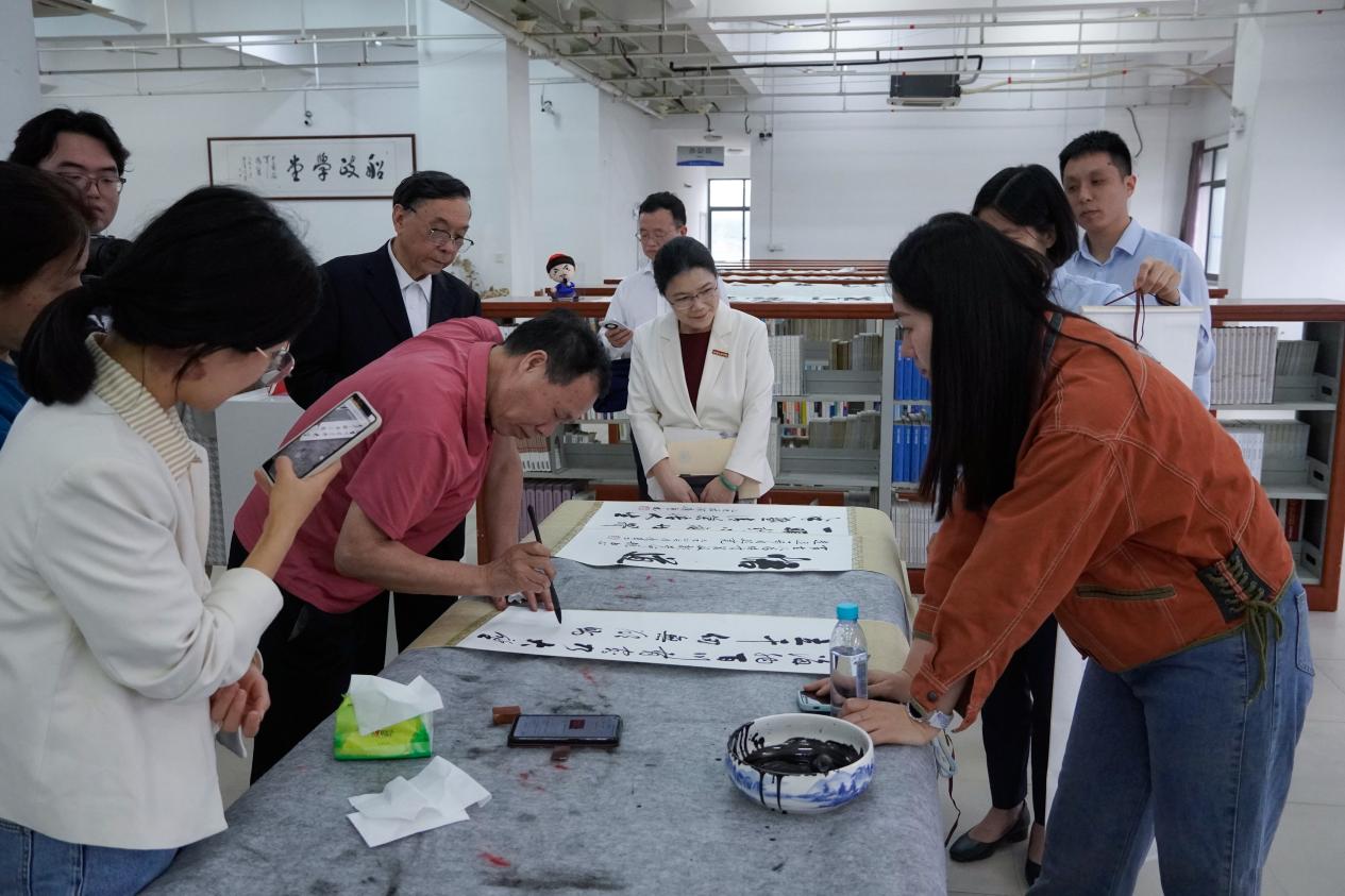本次活動(dòng)還特別邀請(qǐng)了國(guó)家一級(jí)美術(shù)師、林則徐書(shū)畫(huà)院院長(zhǎng)徐天春先生,及國(guó)內(nèi)十位知名書(shū)畫(huà)家齊聚一堂,在圖書(shū)館舉行“紀(jì)念林則徐誕辰240周年”暨“世界讀書(shū)日”特別行動(dòng)——林則徐名言佳句書(shū)法筆會(huì)。學(xué)院黨委書(shū)記陳宜大、院長(zhǎng)陳群與各位領(lǐng)導(dǎo)、嘉賓、現(xiàn)場(chǎng)師生共同見(jiàn)證了這場(chǎng)藝術(shù)與精神的雙重盛宴。