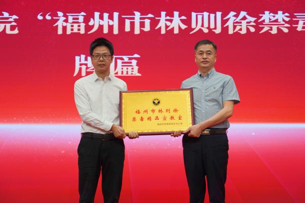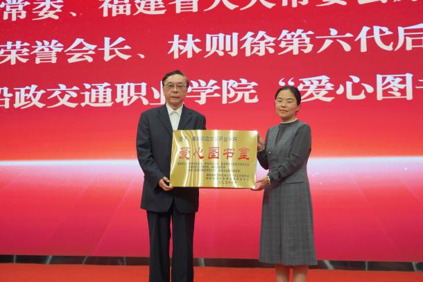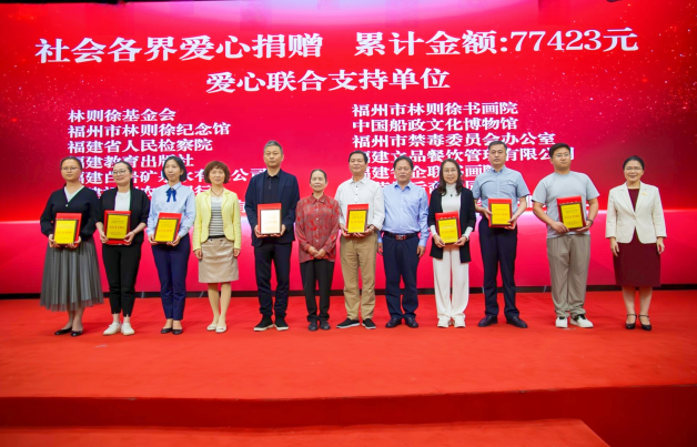 隨后,林則徐基金會(huì)副會(huì)長(zhǎng)、沈葆楨第六代后裔沈園代表林則徐基金會(huì)將水墨長(zhǎng)卷國(guó)畫(huà)作品惠贈(zèng)學(xué)院;福州市公安局禁毒支隊(duì)二級(jí)高級(jí)警長(zhǎng)陳孔壽代表福州市禁毒辦向?qū)W院授發(fā)“福州市林則徐禁毒精品宣教室”牌匾;全國(guó)人大原常委、福建省人大常委會(huì)原副主任、林則徐基金會(huì)榮譽(yù)會(huì)長(zhǎng)、林則徐第六代后裔林強(qiáng)代表林則徐基金會(huì)授予學(xué)院“愛(ài)心圖書(shū)室”牌匾?;顒?dòng)還為愛(ài)心聯(lián)合支持單位進(jìn)行表彰。