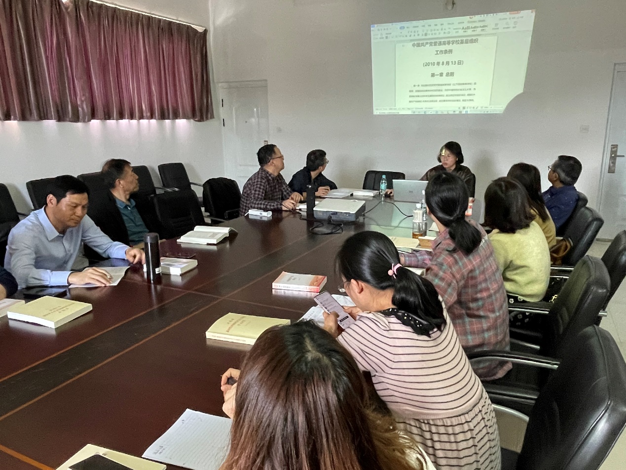 新修訂的《條例》,深入貫徹習(xí)近平新時代中國特色社會主義思想,深入貫徹黨的十九大和十九屆歷次全會精神,貫徹落實新時代黨的建設(shè)總要求和新時代黨的組織路線,堅持以黨章為根本依據(jù),對高?;鶎狱h組織工作作出全面規(guī)范,體現(xiàn)了近年來高校黨建工作的理論、實踐和制度創(chuàng)新成果,是新時代高校黨的建設(shè)的基本遵循?!稐l例》的修訂主要遵循政治性、原則性、實踐性和針對性等原則。新修訂的《條例》共十章三十九條,在保持原有框架基本不變的情況下,對章節(jié)進(jìn)行了調(diào)整,對內(nèi)容作了充實與完善,同時也注重保持了黨內(nèi)法規(guī)的權(quán)威性、連續(xù)性、嚴(yán)肅性,體現(xiàn)了我黨對高校黨建工作的重視。新修訂的《條例》主要充實和完善了七個方面的內(nèi)容:一是完善高?;鶎狱h組織工作的指導(dǎo)思想、目標(biāo)原則;二是適當(dāng)調(diào)整組織設(shè)置和職責(zé);三是健全高校紀(jì)檢工作領(lǐng)導(dǎo)體制和機制;四是加強黨員建設(shè);五是加強干部和人才工作;六是強化對高校黨組織開展思想政治工作以及領(lǐng)導(dǎo)群團組織的要求;七是強調(diào)領(lǐng)導(dǎo)和保障。結(jié)合我院基層黨建實際工作,會議對落實黨的政治建設(shè)、加強思想政治教育、履行黨支部職責(zé)及加強黨員隊伍建設(shè)等內(nèi)容進(jìn)行了重點強調(diào)。