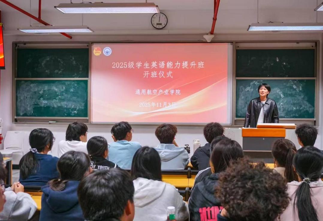 為全面提升學生英語綜合能力與素養(yǎng),助力學子備戰(zhàn)大學英語四級考試,11月3日,通用航空產(chǎn)業(yè)學院英語能力提升班開班儀式在藝新樓順利舉行。學院領導及專業(yè)負責人參加本次活動。