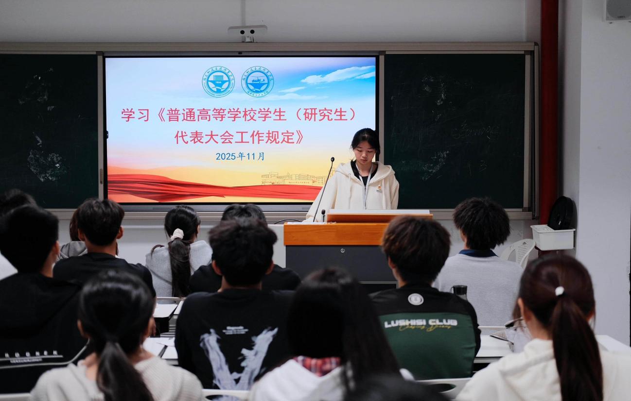 隨后,學(xué)院學(xué)生會主席團成員程思祺為學(xué)員們解讀《普通高等學(xué)校學(xué)生(研究生)代表大會工作規(guī)定》。該文件以民主集中制為原則,明確了學(xué)生代表大會制度是學(xué)生會組織的重要制度,集中體現(xiàn)了學(xué)生會組織的政治性、先進性與群眾性,對保障學(xué)生民主權(quán)利、推動學(xué)生會組織健康有序發(fā)展具有重要意義。