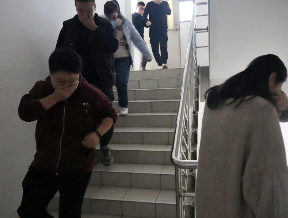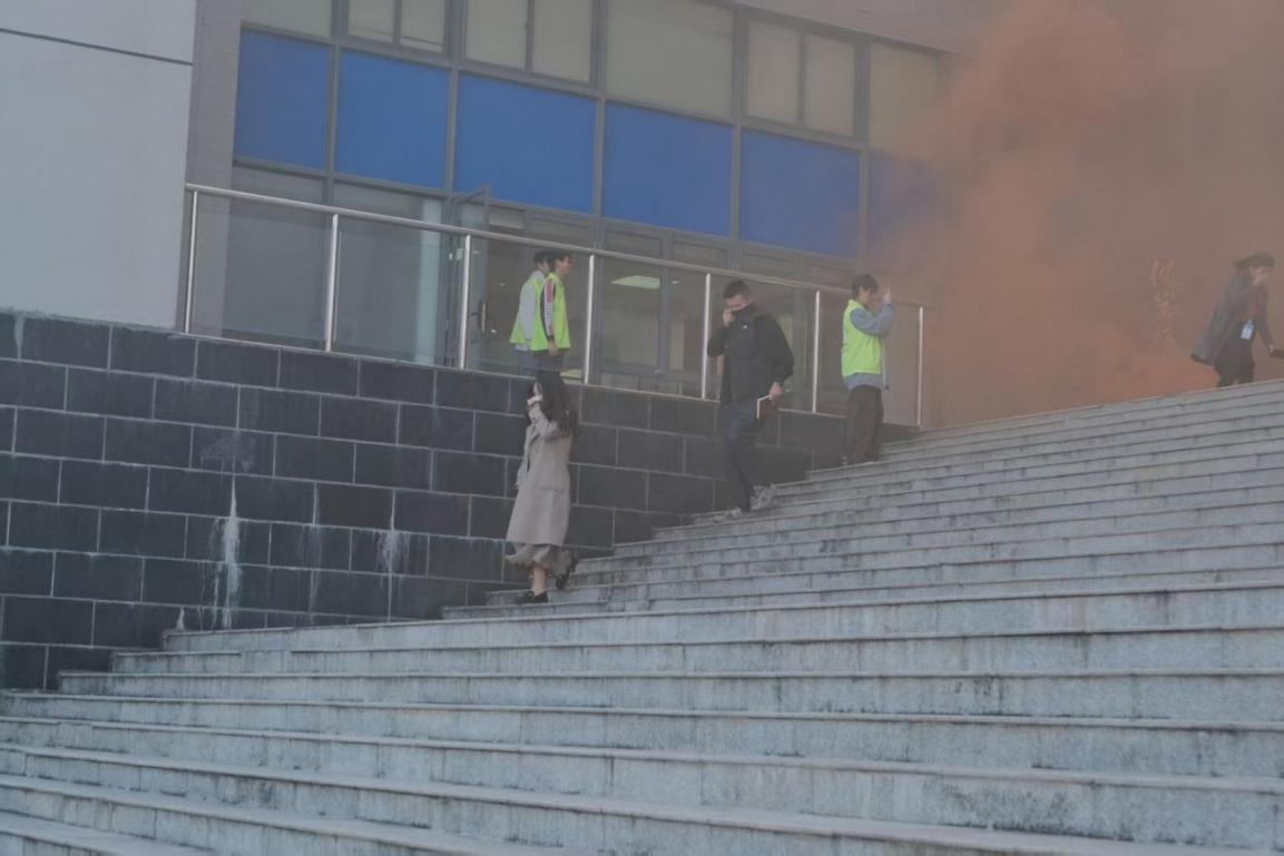 隨著警報聲響起,演練正式啟動。全體教職工按照預設路線,彎腰捂鼻、快速有序地撤離至指定安全區(qū)域,全程做到不推擠、不慌張,充分展現了良好的應急素養(yǎng)。部分教職工主動擔任引導員,協(xié)助清點人數、維護秩序,保障疏散工作高效開展。其他參與單位也迅速完成疏散集結,整個過程規(guī)范有序。