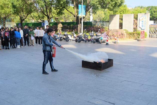 疏散演練結束后,進入消防器材實操教學環(huán)節(jié)。通用航空產業(yè)學院邀請安全保衛(wèi)處專業(yè)人員現場指導,詳細講解滅火器“提、拔、握、壓”四步操作要領,演示了如何判斷火源、選擇站位(上風向)、對準火源根部滅火等規(guī)范動作,并強調了實操過程中的安全注意事項。參訓教職工分組輪流上手實操,在專業(yè)人員的指導下逐一完成滅火器滅火操作,切實將理論知識轉化為實戰(zhàn)技能。其他參與單位教職工現場觀摩學習,同步提升消防實操能力。