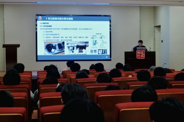 講座伊始,丁偉濱首先從燃燒的基本原理、火災發(fā)生的常見原因等基礎知識入手,結合高校人員密集、實驗室及宿舍隱患多的特點,說明了日常預防、隱患識別與初期應對的關鍵性。