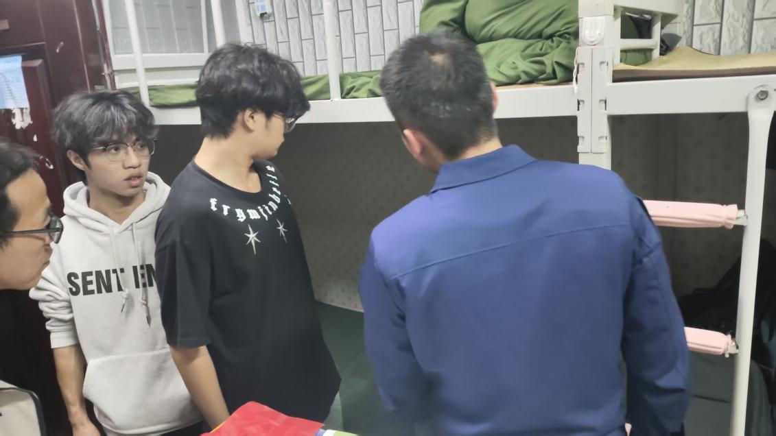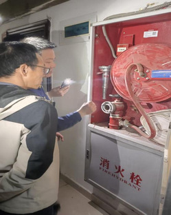 講座結束后,學院領導、丁偉濱及全體輔導員隨即深入學生宿舍,開展消防安全現(xiàn)場檢查與指導。丁偉濱結合消防救援實際經驗,對宿舍內可能存在的用電安全、物品堆放等隱患進行了細致提醒,并現(xiàn)場演示和講解了消防栓的檢查要點與正確使用方法,將理論講解延伸至實地實踐,進一步強化了師生的安全意識和應急操作能力。