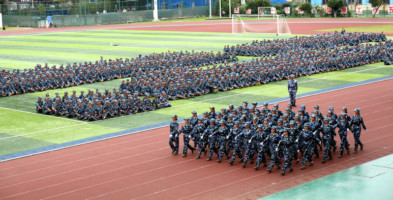 上午10時(shí),2018級4516名學(xué)生身著軍訓(xùn)服裝,在軍訓(xùn)旗的引領(lǐng)下,踏著分列式進(jìn)行曲的鼓點(diǎn),步伐整齊、精神高昂、口號響亮地走向主席臺(tái)接受領(lǐng)導(dǎo)來賓的檢閱,緊接著,進(jìn)行了擒敵拳和單個(gè)軍人隊(duì)列動(dòng)作表演。同學(xué)們動(dòng)作規(guī)范、英勇果敢,贏得了全場的陣陣掌聲。