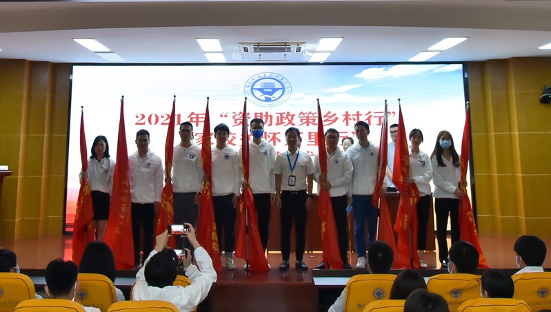 活動儀式上,學(xué)生工作處王心金處長為“家校關(guān)懷萬里行”9個小分隊進(jìn)行授旗。