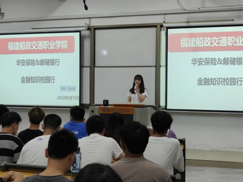 6月10日下午,學(xué)院邀請“福建省金融知識進校園”講師團成員——華安財產(chǎn)保險股份有限公司福建分公司(華安助學(xué))陳冰倩講師在科技樓101開展“金融知識校園行”專題講座,共150余名師生參加。
