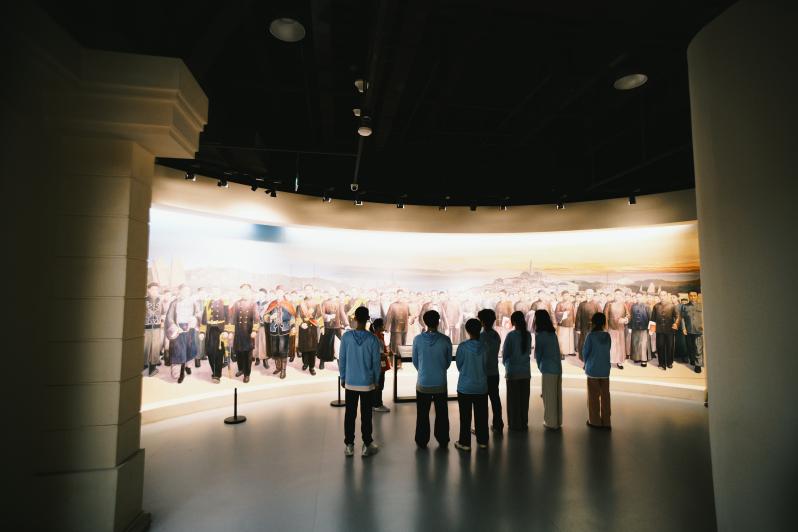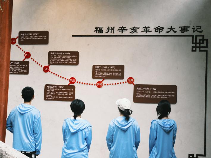 午后轉(zhuǎn)場辛亥革命紀念館。沿著“福建革命歷程”展區(qū)一路向前,手稿、老照片、舊軍帽依次排開,像一條沒有回頭路的長河。最讓大家停步的是古田會議專題柜:一張會議記錄復(fù)印件上,“思想建黨、政治建軍”八個字被圈了又圈,旁邊的參會人員回憶錄邊角卷翹,紙面泛黃。有人伸手想摸,又縮回來,只在筆記本上重重寫了兩行:原來課本里的“重點”,當年真的是用毛筆劃出來的。紅軍斗笠輕得像玩具,輪流戴上拍照時,卻莫名沉得不敢笑太大聲——帽檐下的陰影里,藏著先輩的槍林彈雨,也藏著我們的今天。