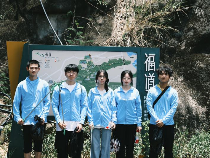 (實踐團成員清理周邊垃圾以及與福道合影)