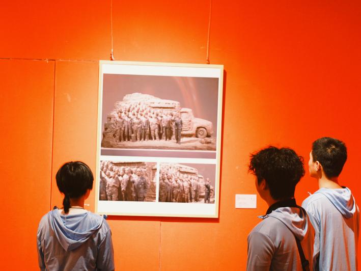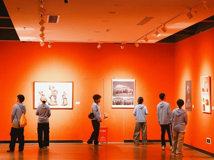 實踐團來到福建省美術(shù)館,參觀 “紀念抗戰(zhàn)勝利 80 周年 —— 福建省第八屆青年美術(shù)作品展”。80余件油畫、雕塑、版畫排成一條時光隧道。油畫《閩海烽火》里天空是燃燒的橙紅,海面是沉郁的深褐,仿佛能聽見炮火在耳邊炸響;雕塑《最后的家書》只有薄薄一頁銅紙,卻重得讓展廳瞬間安靜。大家放慢腳步,不敢大聲呼吸,好像怕驚動那段歷史。留言墻前,有人寫下“今日盛世,已如你們所愿”,也有人只畫了一顆小小的愛心。走出館門,陽光刺眼,卻沒人抬手遮,有人輕聲說:“原來和平是有顏色的,是畫里的火光熄滅后,留在我們眼里的光。”