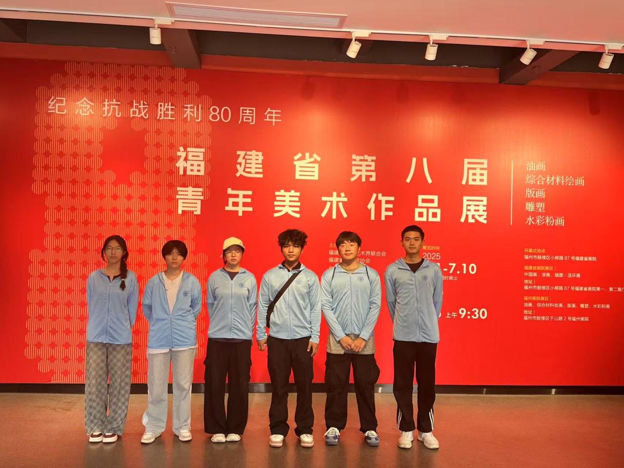 (實踐團成員在福建省第八屆青年美術(shù)作品展的合影)