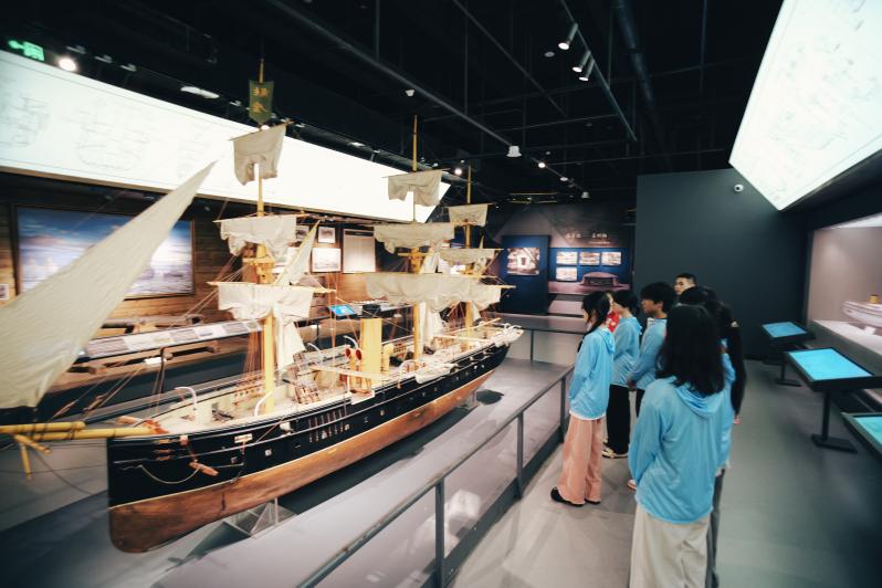 實踐團在船政博物館看到,漢代樓船、宋代海船模型靜靜泊在展柜里,仿佛在等待出港的號角。馬尾海戰(zhàn)全息投影啟動時,炮聲、火光、海浪一起涌來,大家下意識抓緊欄桿,像真的站在甲板上。船政學(xué)堂復(fù)原教室里,木課桌、銅墨水瓶、老式地球儀一字排開,黑板上的“師夷長技以自強”粉筆字清晰可見。有人坐到課桌前,把筆記本攤在面前,閉眼想象百年前瑯瑯書聲,再睜眼時,鼻尖竟有些發(fā)酸。