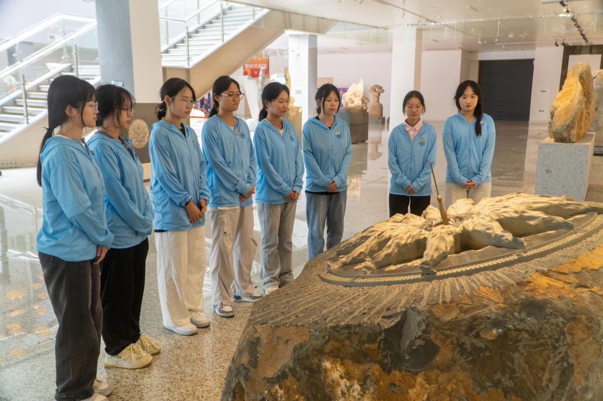 離開工作室,隊(duì)伍前往 “世界石雕之都” 展示中心與雕藝博物館。展示中心以石材為載體,展現(xiàn)山海特色與千年雕藝精髓;博物館內(nèi)千余件展品,串聯(lián)起從傳統(tǒng)影雕到現(xiàn)代抽象石雕的技藝演變歷程。成員們?cè)趨⒂^中,見證傳統(tǒng)紋樣與當(dāng)代設(shè)計(jì)的融合,感受古老工具與現(xiàn)代機(jī)械在石雕創(chuàng)作中的協(xié)作,深刻理解文化傳承與創(chuàng)新的內(nèi)在邏輯,認(rèn)識(shí)到傳統(tǒng)匠心技藝對(duì)鄉(xiāng)村文化振興的重要意義。