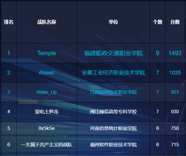 福建省第六屆“閩盾杯”網(wǎng)絡(luò)空間安全大賽(黑盾全國大學(xué)生賽道),于9月6日圓滿收官。大賽共吸引來自全國27個省份、124所高校的377支戰(zhàn)隊踴躍參與。我院信息與智慧交通學(xué)院學(xué)子奪得高職組冠軍。