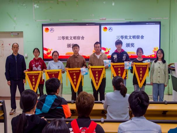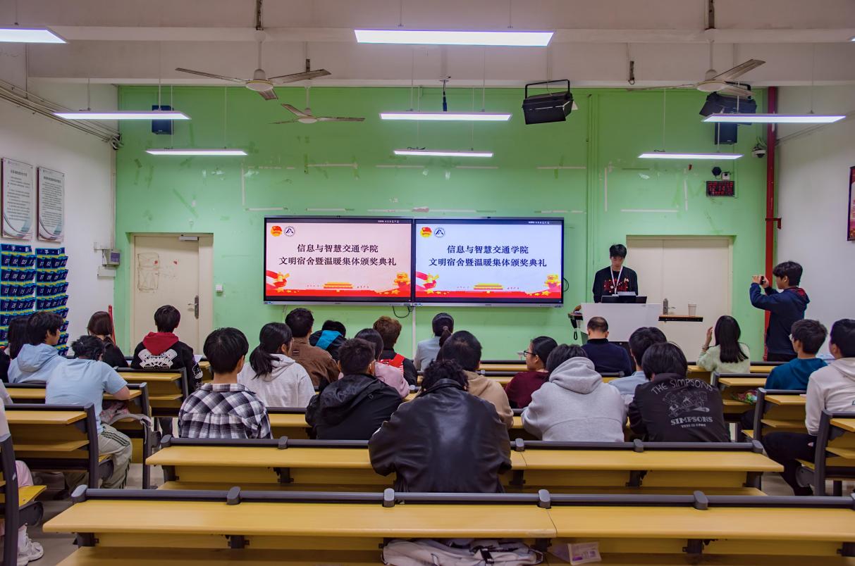 為進(jìn)一步推進(jìn)文明校園、和諧校園、平安校園創(chuàng)建,切實(shí)推動(dòng)“溫暖集體”建設(shè)工作落實(shí)落細(xì),全面提高學(xué)生的自我管理能力和綜合素質(zhì)水平,11月13日,信息與智慧交通學(xué)院在福道園自強(qiáng)樓1-4教室舉辦2025-2026學(xué)年第一次文明宿舍暨溫暖集體頒獎(jiǎng)儀式。出席本次活動(dòng)的有信息與智慧交通學(xué)院黨總支副書記柳燕妮,輔導(dǎo)員代表,獲獎(jiǎng)宿舍學(xué)生和新生班級(jí)代表等。活動(dòng)由信息與智慧交通學(xué)院自律會(huì)紀(jì)保部負(fù)責(zé)同學(xué)主持。