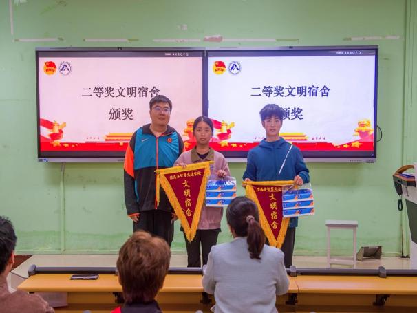 柳燕妮副書記向受表彰宿舍同學(xué)表示了祝賀。她希望同學(xué)們以先進(jìn)為榜樣,從保持宿舍干凈整潔做起,將文明修養(yǎng)內(nèi)化于心;同時(shí)不斷強(qiáng)化擔(dān)當(dāng)意識(shí),共建溫暖集體,把文明熱情轉(zhuǎn)化為學(xué)習(xí)成長動(dòng)力,積極展現(xiàn)新時(shí)代大學(xué)生的青春風(fēng)采。