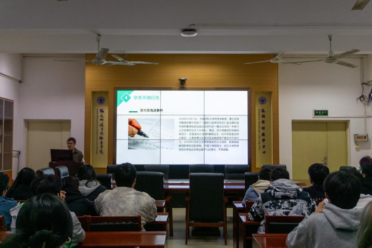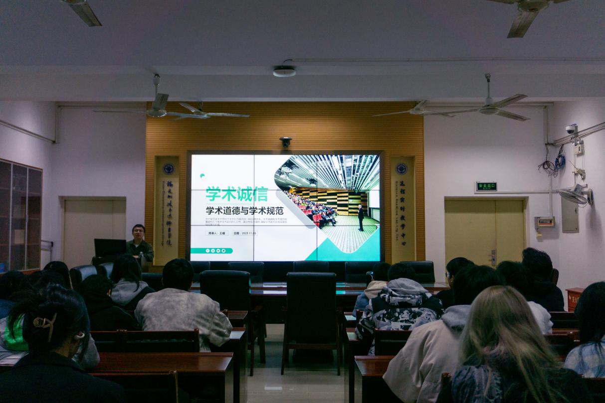 講座中,王健老師聚焦學術(shù)實踐中的常見問題,針對引用不規(guī)范、內(nèi)容抄襲片段拼接等現(xiàn)象,細致講解學術(shù)引用格式、注釋規(guī)范及文獻借鑒邊界,幫助同學們掌握“合理借鑒、規(guī)范標注”的實操方法。隨后,他通過浙大賀海波論文造假、于艷茹論文抄襲等典型案例,剖析學術(shù)不端行為的成因、危害及嚴重后果,結(jié)合高校學術(shù)違規(guī)處理規(guī)定為同學們敲響警鐘,引發(fā)廣泛警醒與討論。講座最后,王健老師向全體學生發(fā)出倡議,呼吁大家將學術(shù)規(guī)范內(nèi)化為自覺行動,堅守誠信治學底線,共同營造風清氣正、求真務(wù)實的校園學術(shù)環(huán)境。