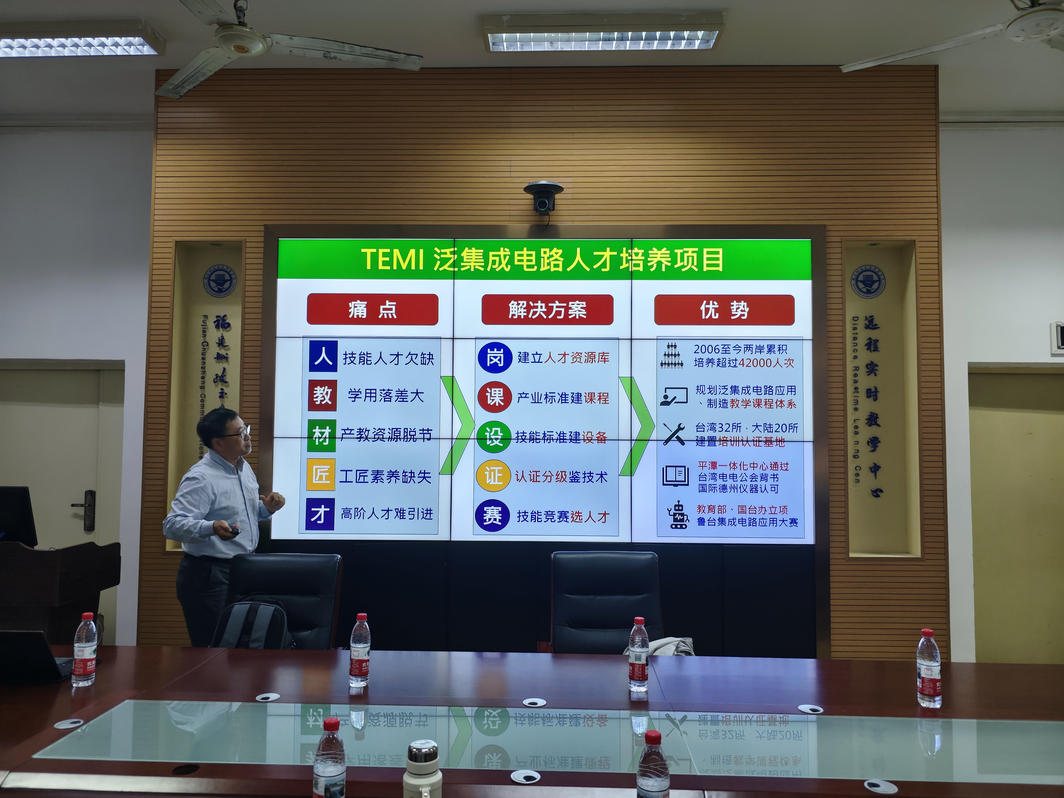 交流中,陳宏昇博士圍繞泛集成電路產(chǎn)業(yè)發(fā)展現(xiàn)狀、人才需求痛點及產(chǎn)教融合創(chuàng)新路徑展開分享。他深入剖析了當前行業(yè)“技能人才欠缺、學(xué)用落差大、產(chǎn)教資源脫節(jié)”等核心問題,重點介紹了TEMI五合一芯質(zhì)生產(chǎn)力人才培養(yǎng)模式。并結(jié)合寧波大學(xué)科技學(xué)院、山東信息職業(yè)技術(shù)學(xué)院等成功案例,詳細解讀了“政府+產(chǎn)業(yè)園+院校”的多元合作模式,以及電子組件拆焊、電路板設(shè)計、單片機程序設(shè)計等核心課程的實踐教學(xué)體系。